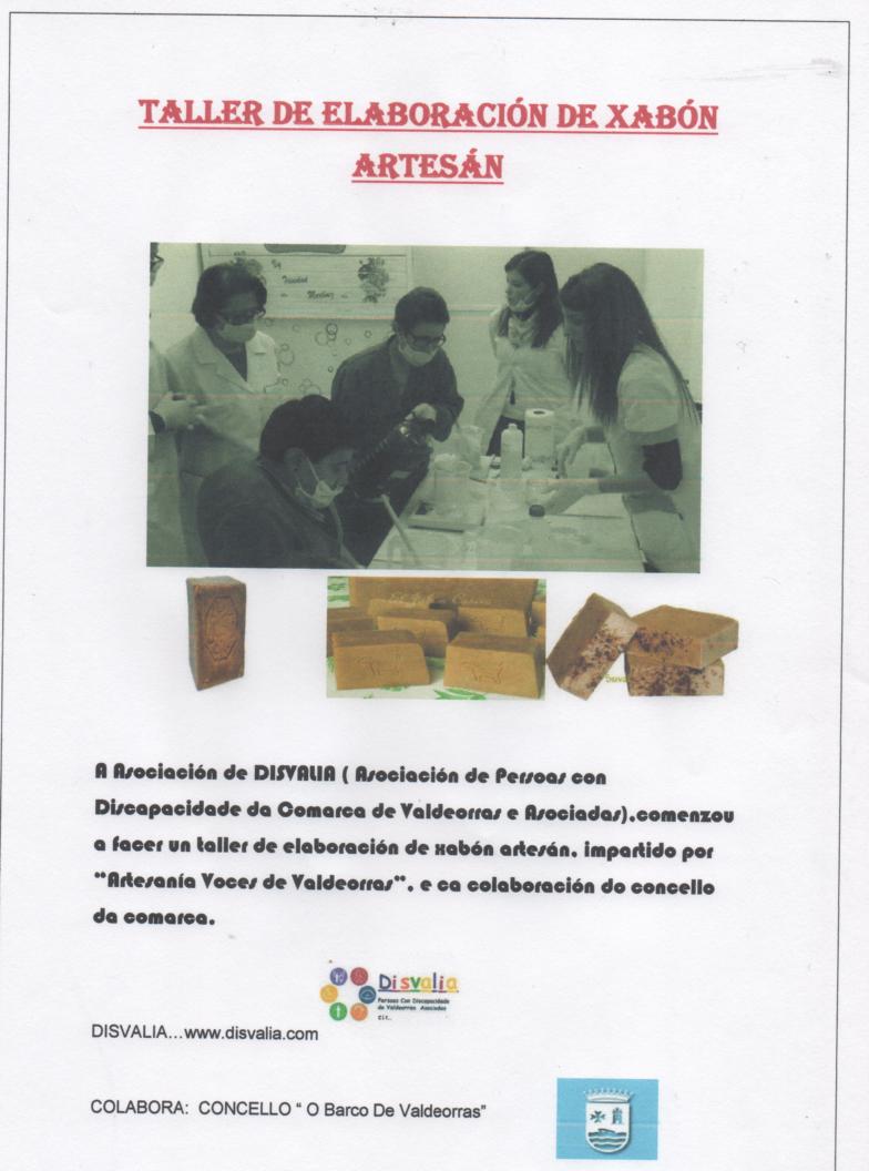 DISVALIA,comenzou a facer un taller de elaboración de xabón artesán, impartido por “Artesanía Voces de Valdeorras”, e ca colaboración do concello da comarca.TALLER DE ELABORACIÓN DE XABÓN ARTESÁN